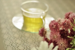 爽やかな淡いブルーの水彩画のような花柄のカーテンです。
