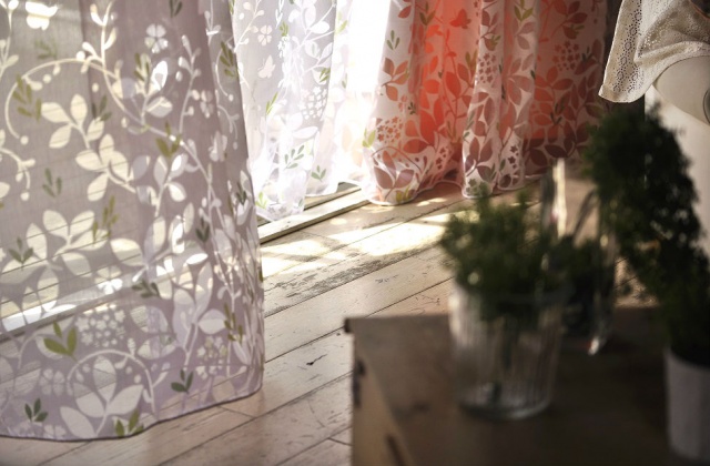 こちらのレースは柄を浮きださせるオパール加工を施し、さらにプリントを重ねています。 ふだんの生活の中、窓を開けて家事をしていると時折風が吹い …