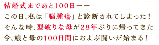 TBSでは、10月期の火曜ドラマ枠で『結婚式の前日に』を放送する。結婚式を100日後に控えながら「脳腫瘍」と診断された娘と、そんな娘の前に28年ぶりに現れた型破りな母による“ヒューマンラブストーリー”。主人公が病気になるからといって決してシリアス&お涙頂戴ストーリーではなく、観る人の心を明るく前向きにする、結婚式までの100日間を描いていく。