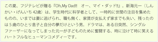 カーテンファクトリーはフジテレビドラマ「Oh,My,Dad!!」に美術協力しています。