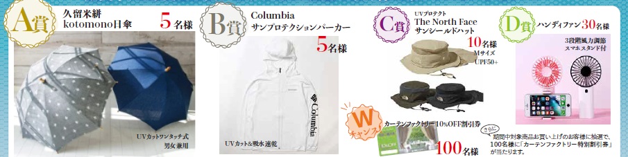 C賞:サンシールドハット(10名様)/D賞:ハンディファン(30名様)