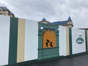 現在、新しいエリアを作っているということで、園内からは重機がチラっと見えていました。が、それを囲っている仕切りがしっかりとディズニーのデザインになっていました。
