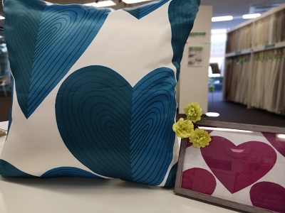 カーテンにハートはちょっと抵抗がというお客様にはクッション&クッションカバーなどいかがでしょうか?