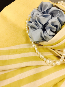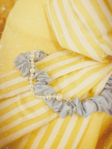 華やかで可愛らしい黄色のドレープに、可愛い雰囲気のタッセルを合わせてドレスのようなコーディネート♡