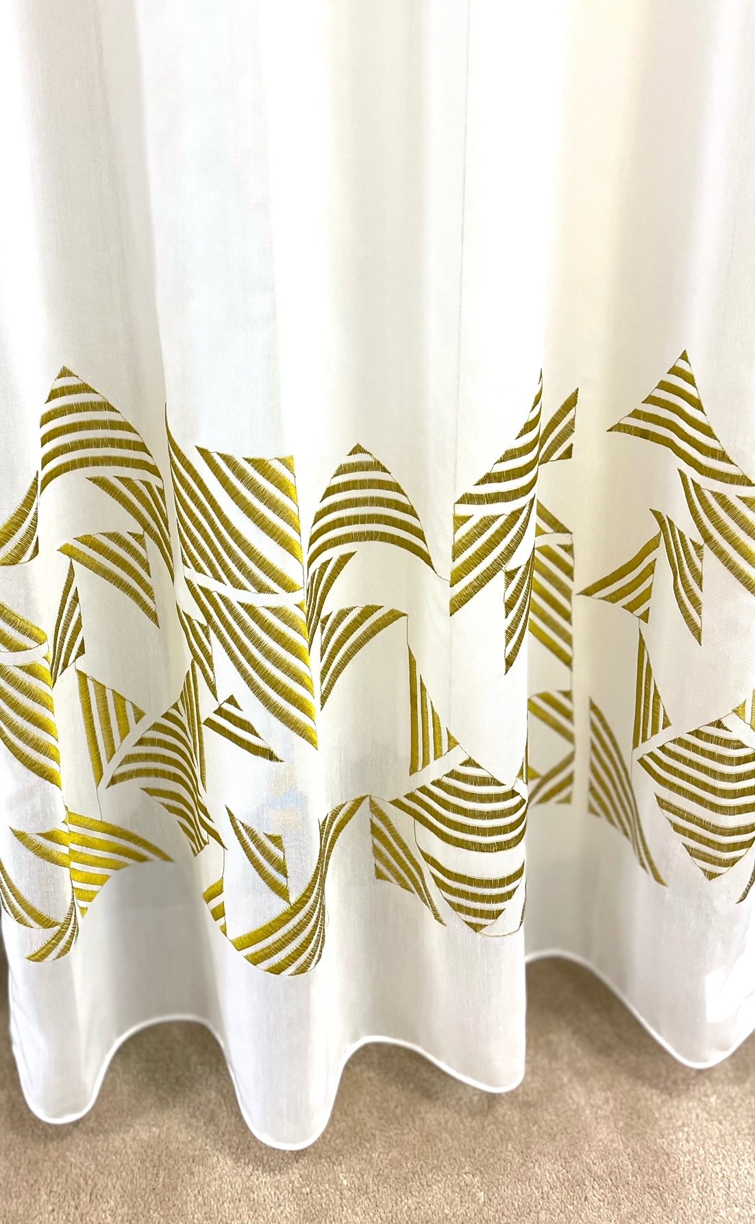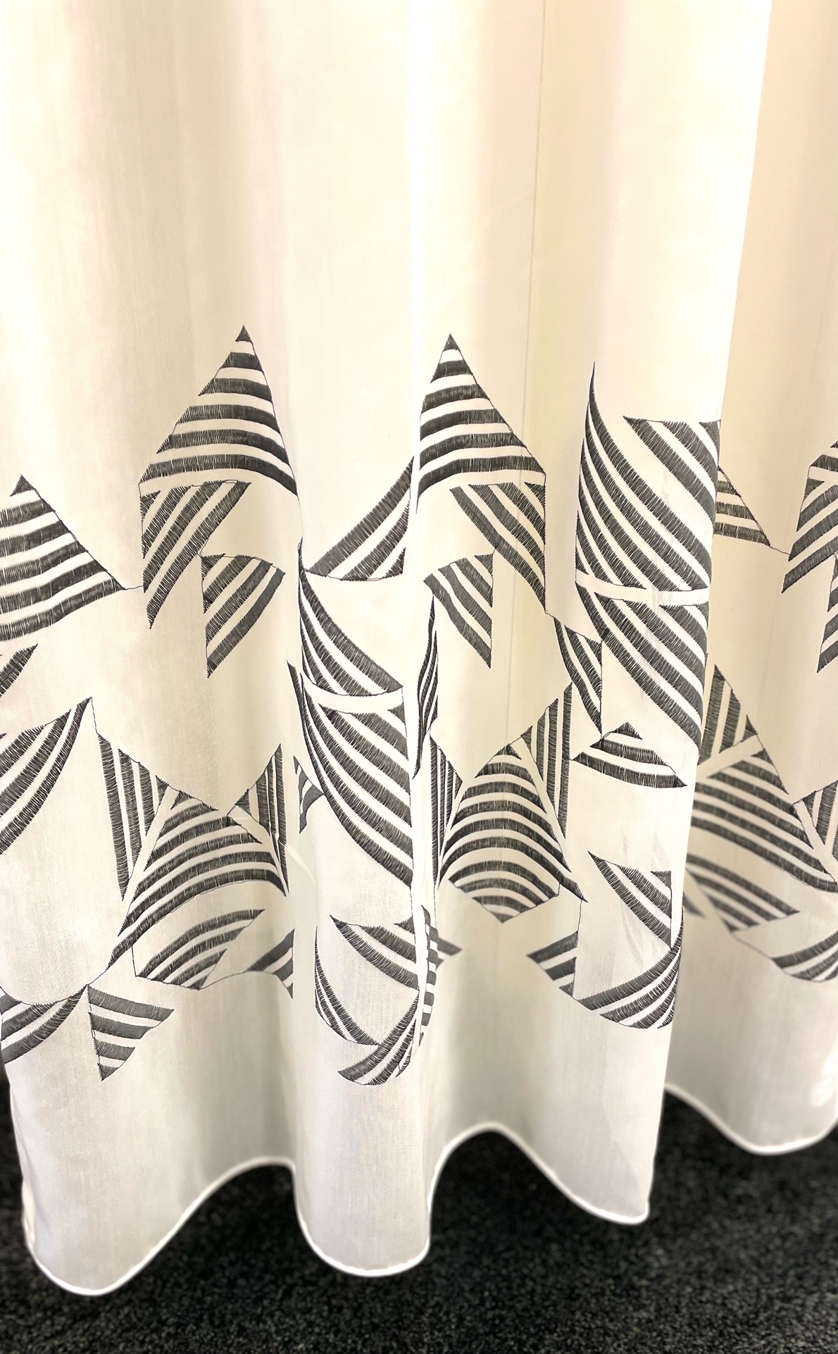 アイボリーの生地に縦のなみなみ模様がプリントされています。