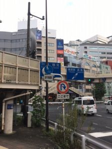④更に直進すると、3つ又の歩道橋が見えてきます。