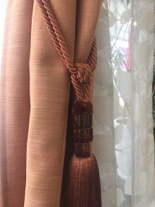 タッセルもドレープよりひと色深いオレンジをコーディネートしました。