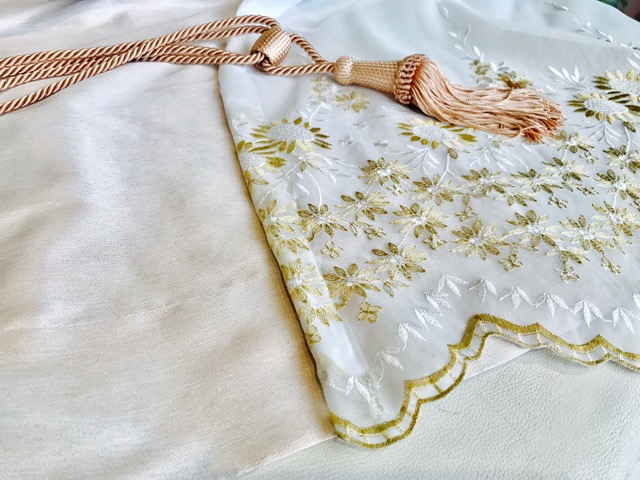 厚手がシンプルな分、レースは裾の刺繍が入っているものでアクセントをプラスすると素敵ですよ。