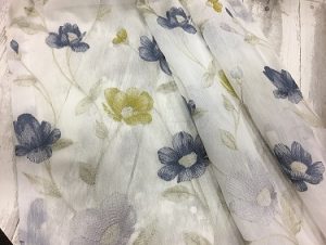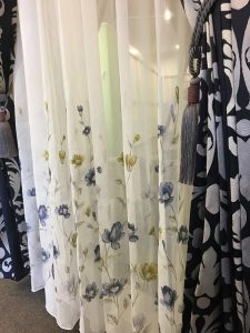 色を使った刺繍のレースカーテンも
