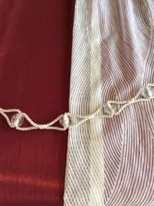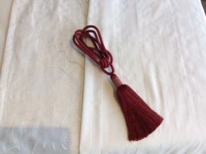 新年を寿ぐカーテンに “金の鶴” を添えて飾りました。