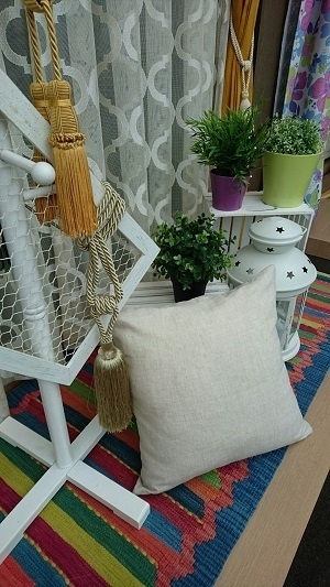 カーテンとクッションカバーを揃えるとお部屋のトータルコーディネート感がグンと増しますよ。