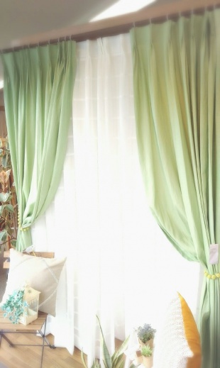 青梅のような爽やかなグリーンのカーテンをご紹介します!
