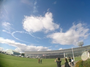 間に合わないかも?って思いながらついたら、ブルーインパルスの予行が時間変更になってました。