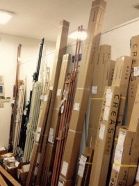 レールやカーテンは一旦お店に納品されるのですが、案の定パンク状態!