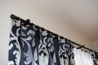 「この度は当店にてご注文頂き、誠にありがとうございました。奥様がクラシックな柄がお好みでしたので、プレミアムカーテンをお薦めさせて頂きました。生地を触って頂くと、“柔らかい”とご好評で、即決して下さいました。また、旦那様は落ち着いた感じの室内が良いとのことでしたので、カーテンレールもブラックにし、クラシック且つシックなお部屋になりました。小窓が多かったのですが、ブラインドやロールスクリーンでそれぞれのお部屋を統一し、とても素敵な空間になったと思います。H様はお打合せ中もご夫婦の仲がとても良く、私もとても楽しい時間になりました。またお部屋のイメージを変えたい時には、是非ご相談下さいませ。」