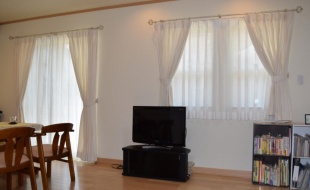 リビングと和室がひと続きの間取りでした。統一感をもたせたいと、初めは同じカーテンを考えていましたが、スタッフのアドバイスで和室は色を変えて、形状安定のカーテンにしてみました。モダンな空間となり、お客様にも評判がよく、変えてよかったと思いました。